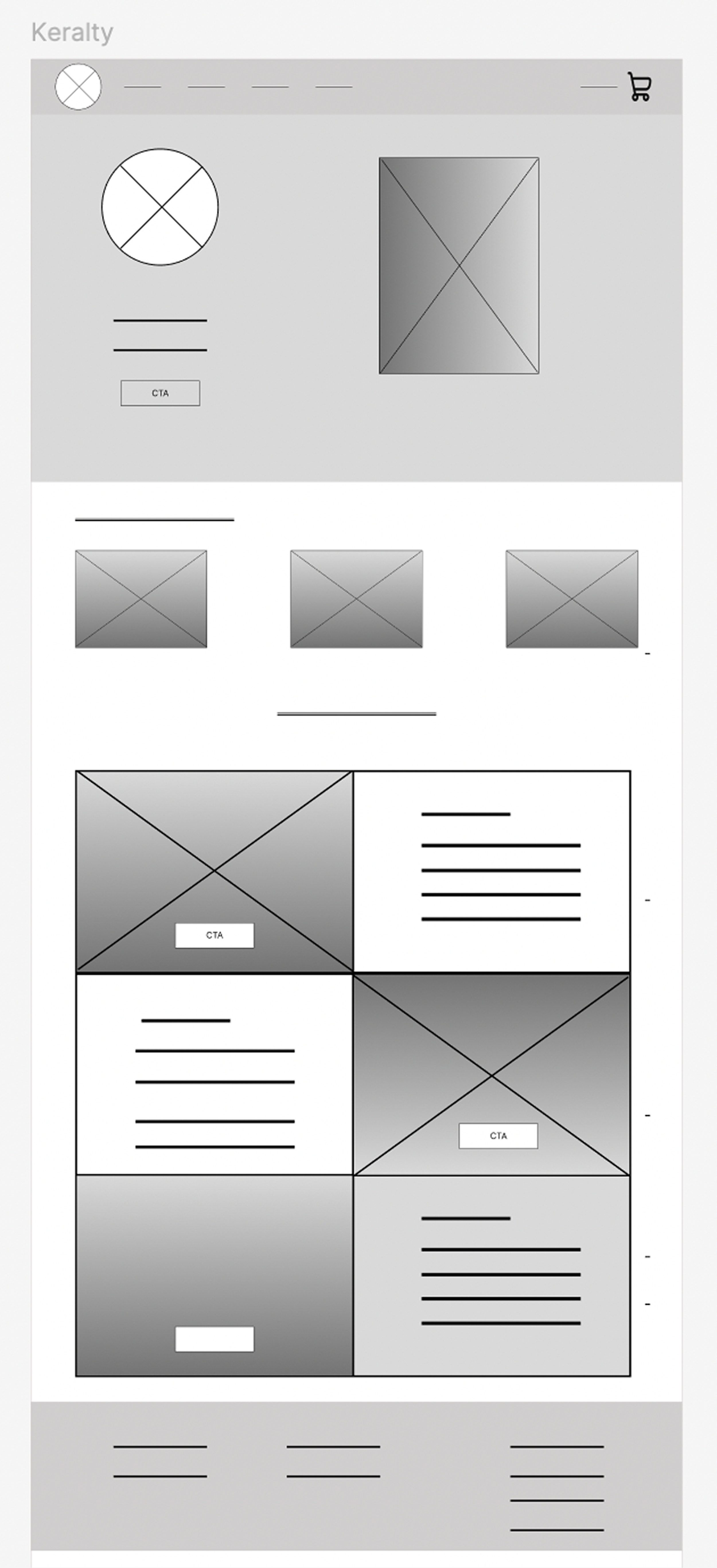 The low-fidelity wireframe established the homepage information hierarchy, visual balance, and primary user flow. I prioritized a linear scrolling experience so users could naturally discover collections without relying on complex navigation.